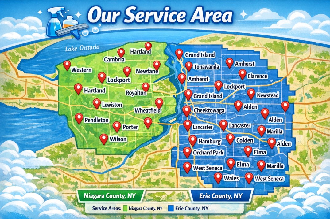 At Greiner Clean and Clear LLC, we provide dependable residential and commercial cleaning services you can count on. We focus on showing up on time, doing the job thoroughly, and treating every home and business with care and respect. We proudly serve Lockport, East Amherst, Amherst, Williamsville, Clarence, Clarence Centre, Hamburg, Orchard Park, and Lancaster, NY, delivering consistent, high-quality results that make your space look and feel its best.